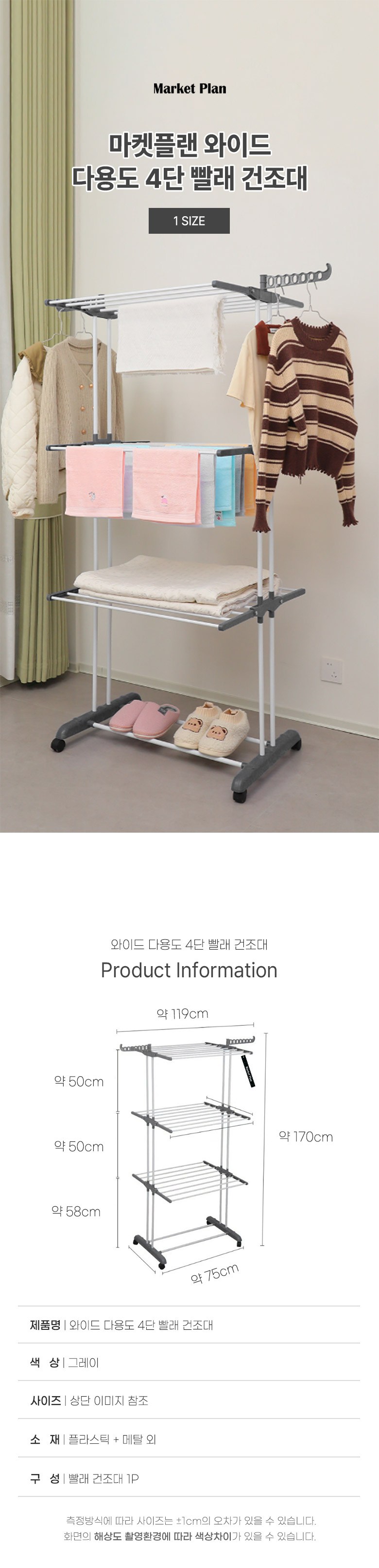 | 품명 및 모델명 | 마켓플랜 와이드 다용도 4단 빨래 건조대 | 인증/허가 사항 | 해당없음 |