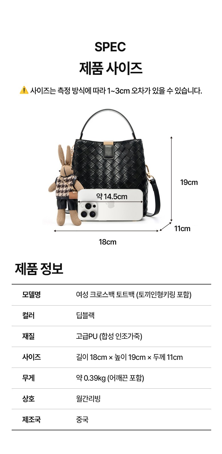 월간리빙 가벼운 데일리 여성 크로스백 버킷백 토트백