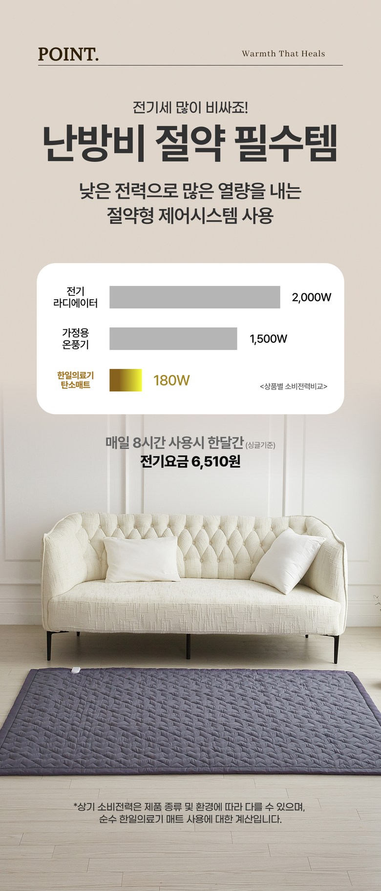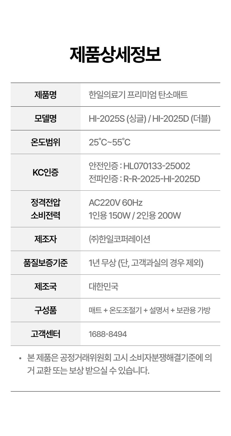 | 정격전압, 소비전력 | AC220V 60Hz / 1인용 150W 2인용 200W | 에너지소비효율등급 | 「에너지이용 합리화법」에 따른 에너지소비효율등급 표시대상 기자재에 한함 |