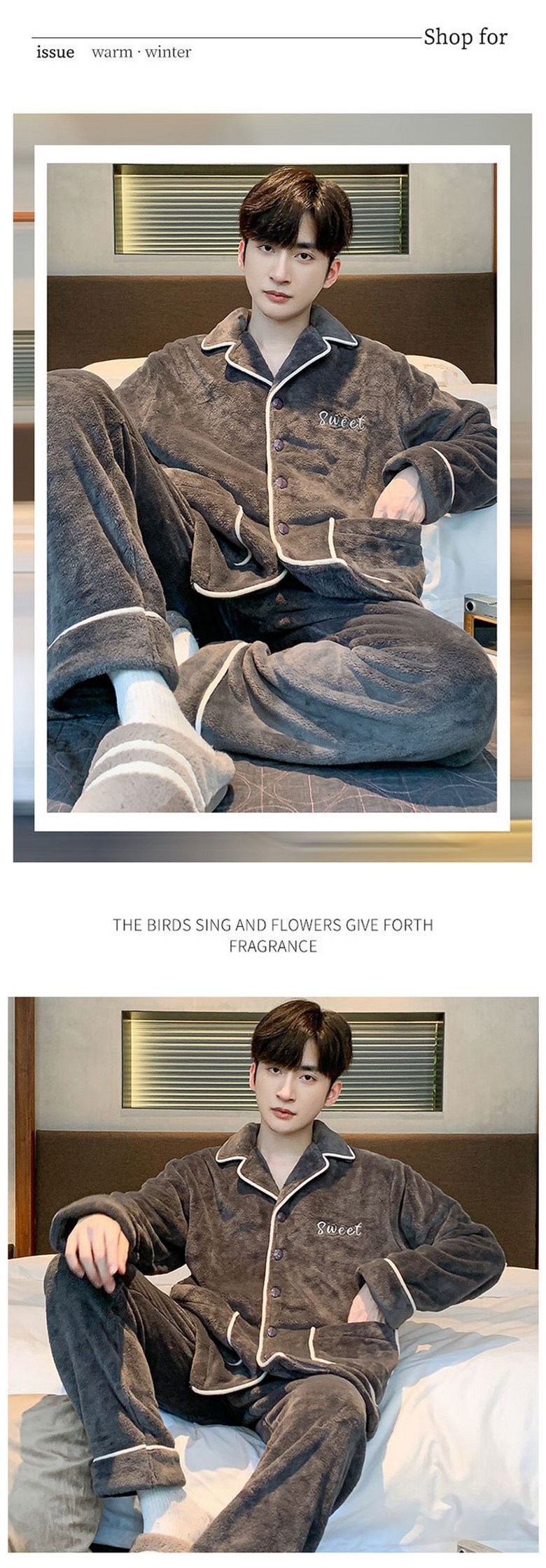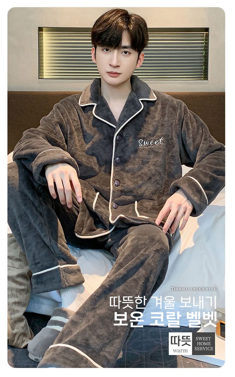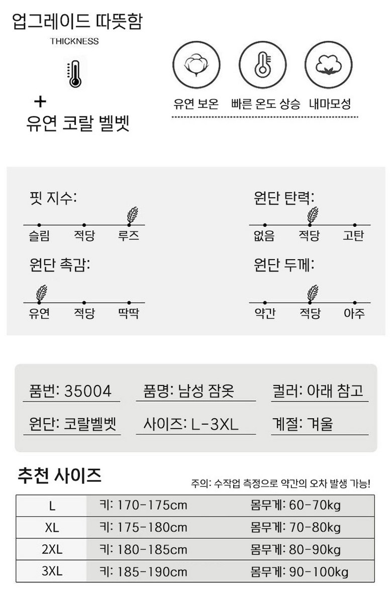 | 제품 소재 | 남성용 피치기모 긴팔 카라 잠옷 상하의 세트 | 색상 | 블랙,멜란지 그레이 |