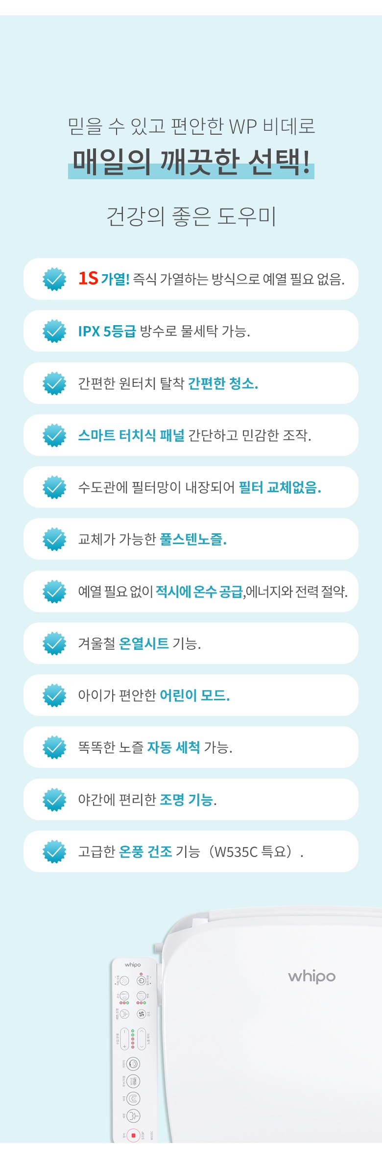 | 출시년월 | wp 비데 2025년 11월 | 제조자(수입자) | whipo |