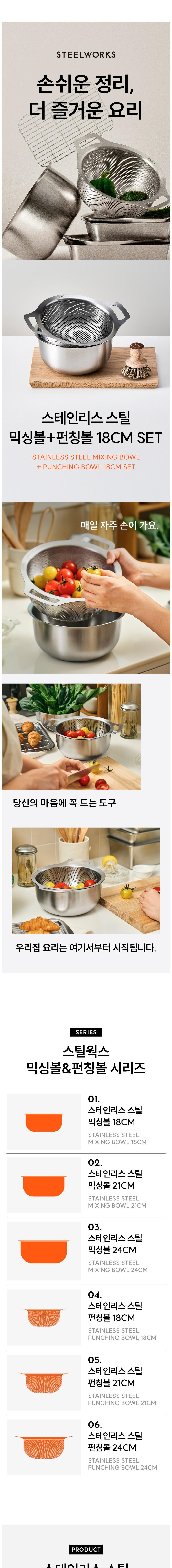 스틸웍스 스테인리스 스틸 믹싱볼 + 펀칭볼 세트