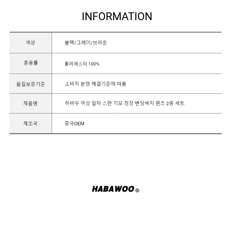 - 하의 밴딩 유무: 밴딩(고무줄) 있음