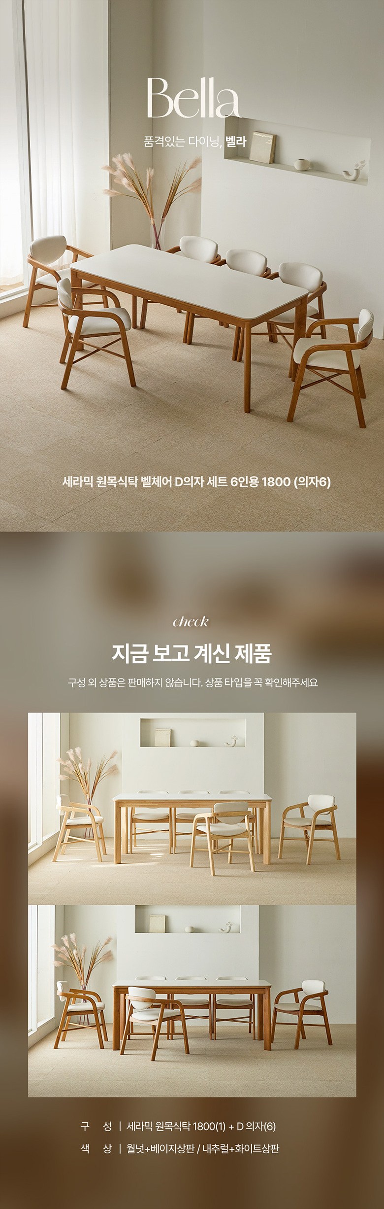 | 색상 | 컨텐츠 참조 | 구성품 | 원목식탁 + 의자6p |