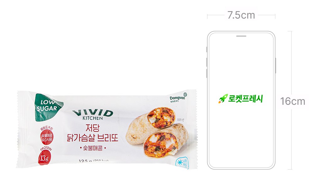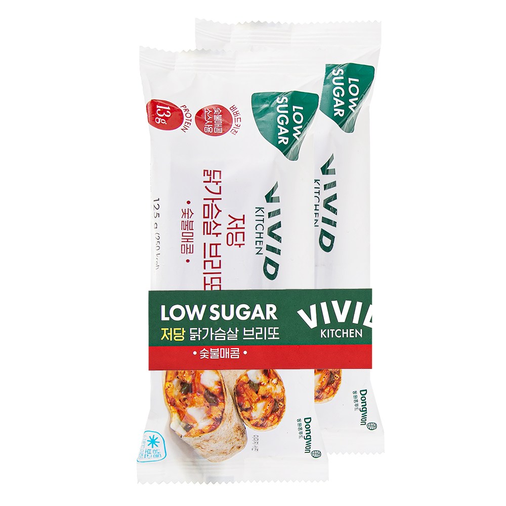 믿고 먹을 수 있는 간편식과 저당 소스로 사랑받는 브랜드, 비비드키친의 저당 닭가슴살 브리또를 만나보세요. 통밀가루로 반죽한 얇은 또띠아 속에 두툼한 그릴드치킨과 쫄깃한 모짜렐라치즈를 넉넉하게 채웠답니다. 한입 먹으면 촉촉한 소스가 입안 가득 스며 은은한 숯불 향과 매콤한 풍미를 선사하죠. 전자레인지나 에어프라이어로 조리가 가능하니, 간편하게 데워 바쁜 일상 속의 한 끼를 챙기셔도 좋아요.