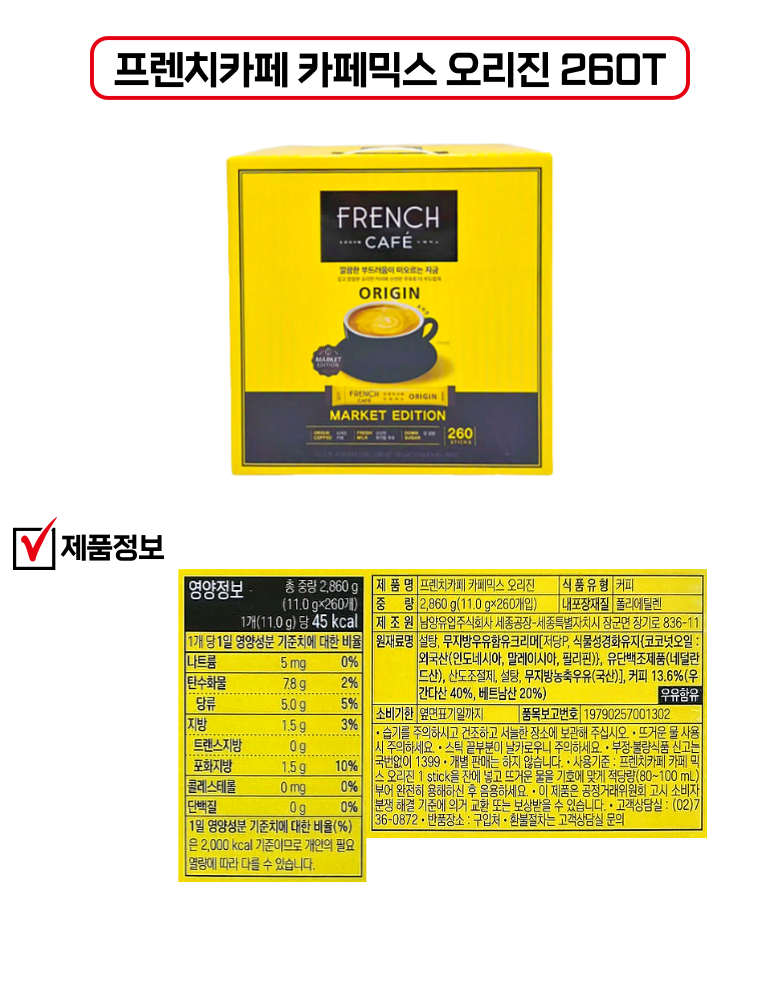| 제조국(원산지) | 상품 상세페이지 참조 | 제조자(수입자) | 상품 상세페이지 참조 |