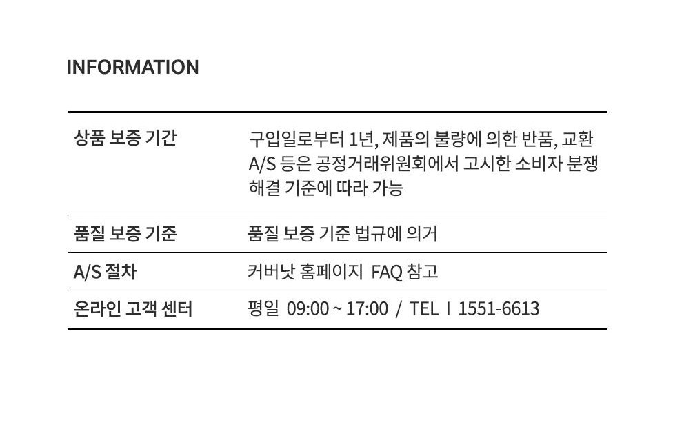 - ㆍ교환/반품에 관한 일반적인 사항은 판매자가 제시사항보다 관계법령이 우선합니다.