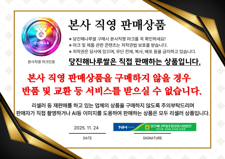 | 생산자(수입자) | 당진해나루쌀조합공동사업법인 | 원산지 | 충남 당진시 |