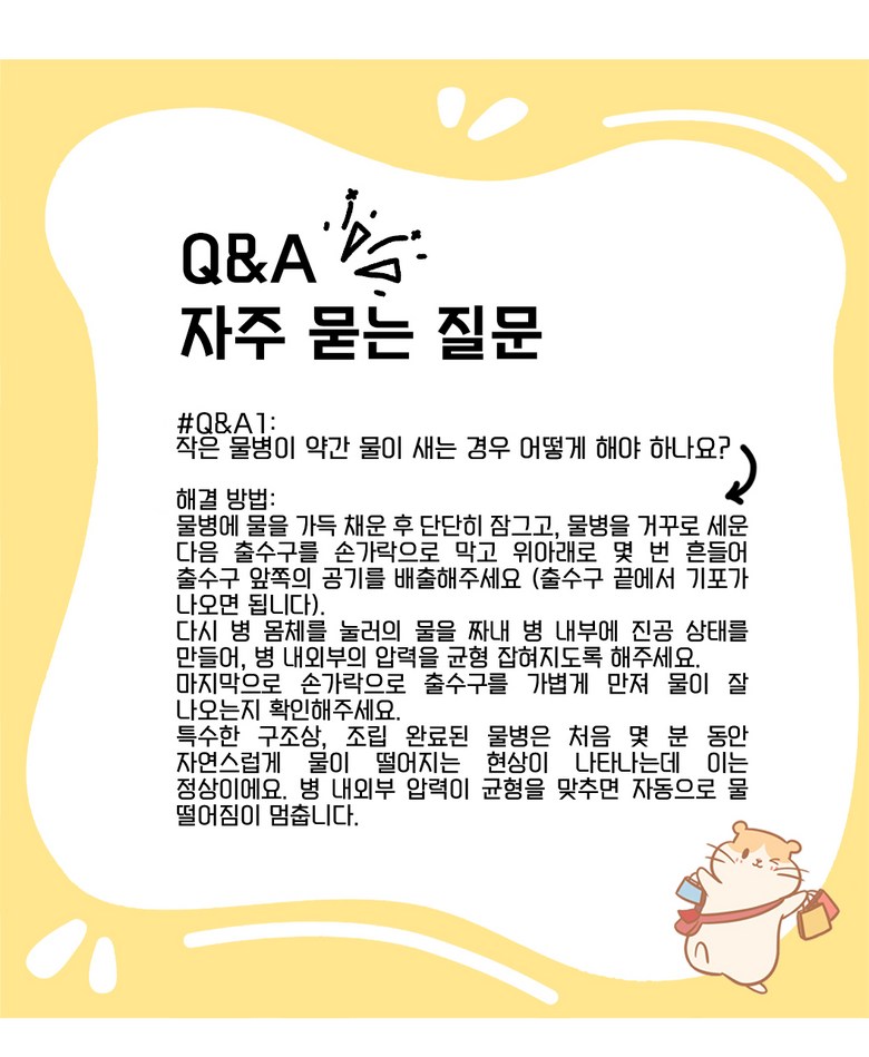 - 가격, 판매자, 교환/환불 및 배송 등 해당 상품 자체와 관련 없는 문의는 고객센터 내 1:1 문의하기를 이용해주세요.