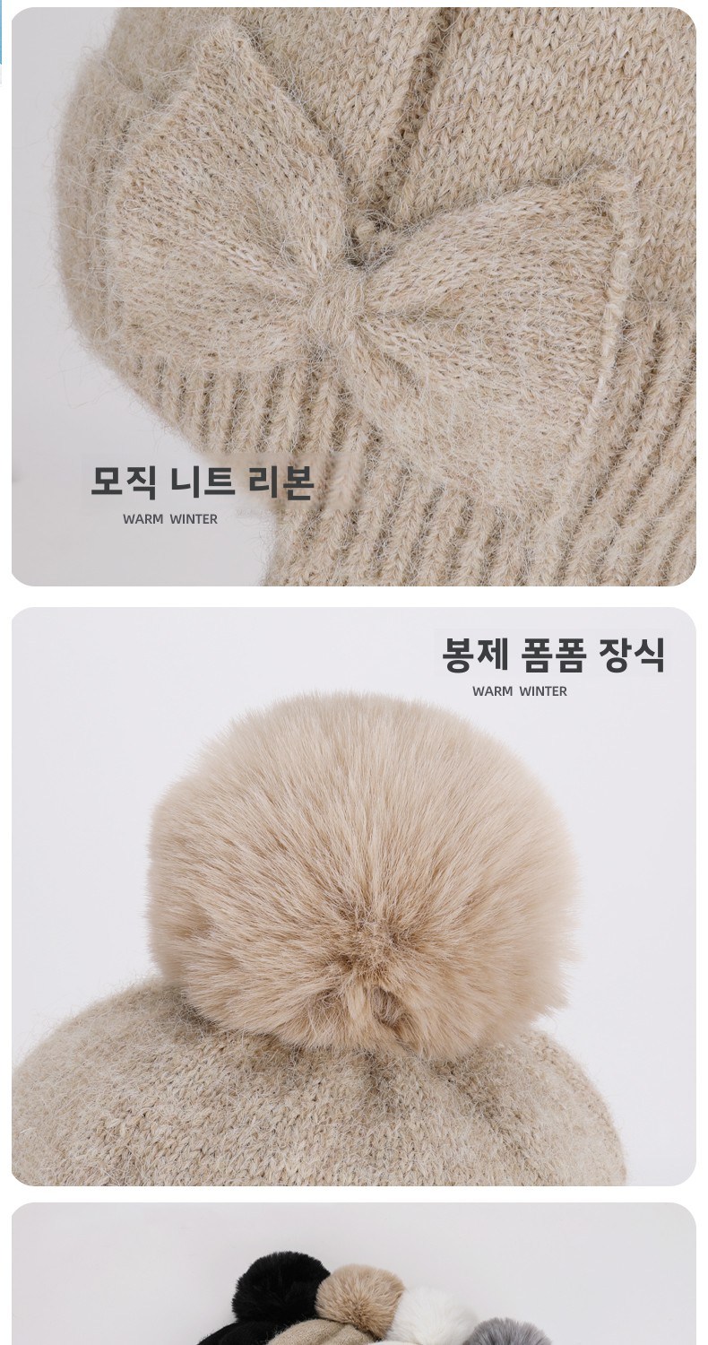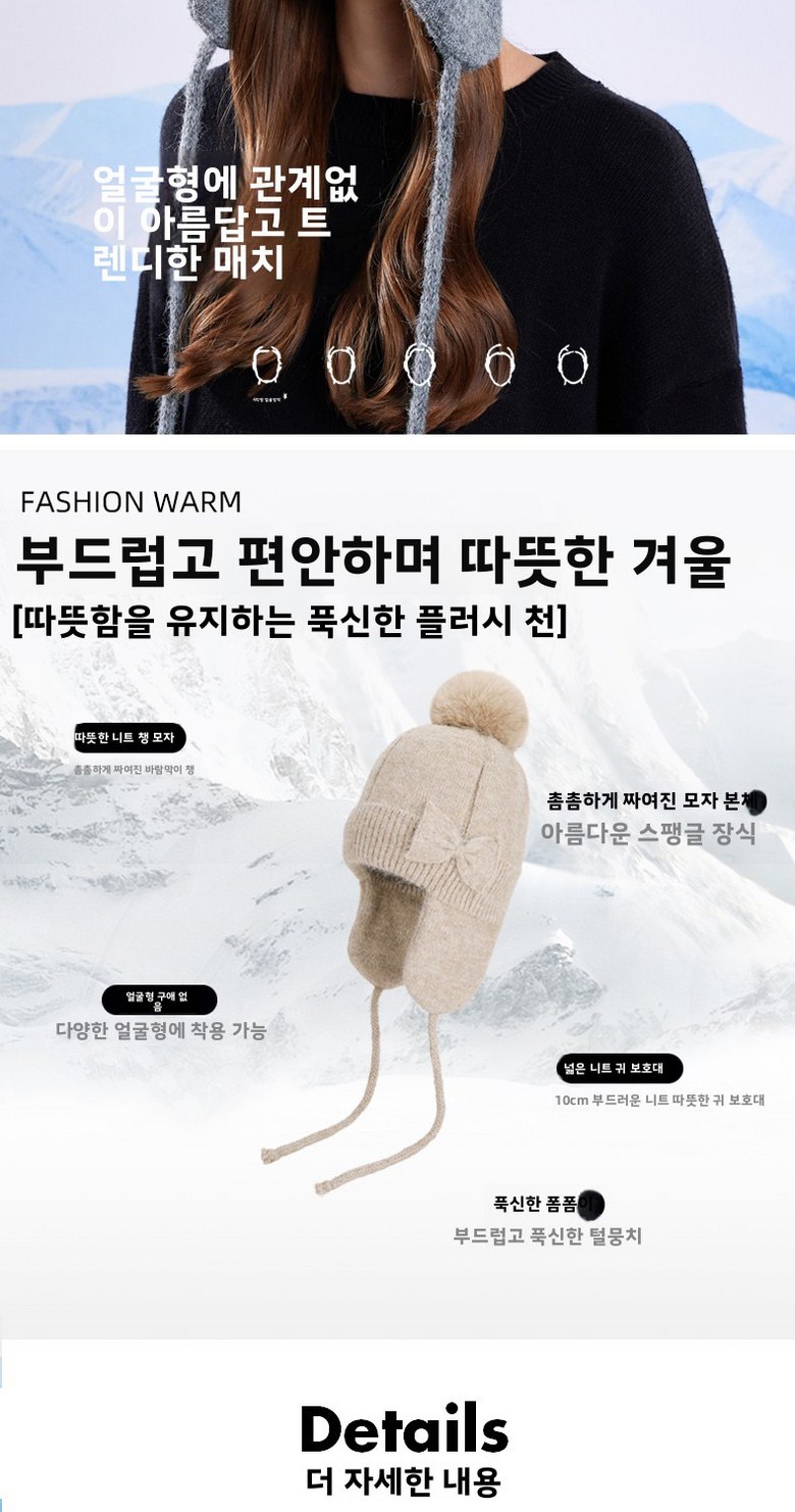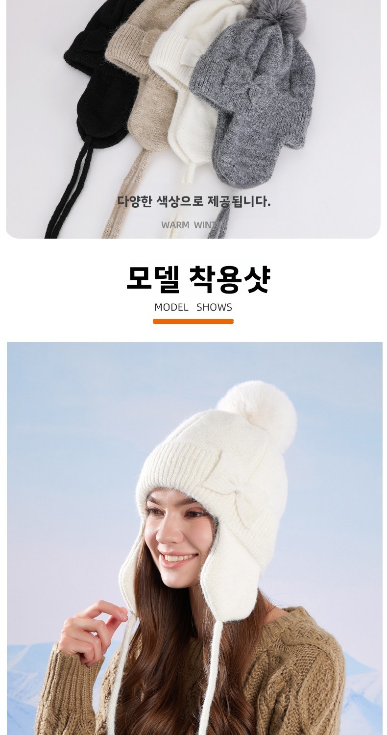 OCEANSUNFISH 여성 니트 방울 귀달이 모자 #8992