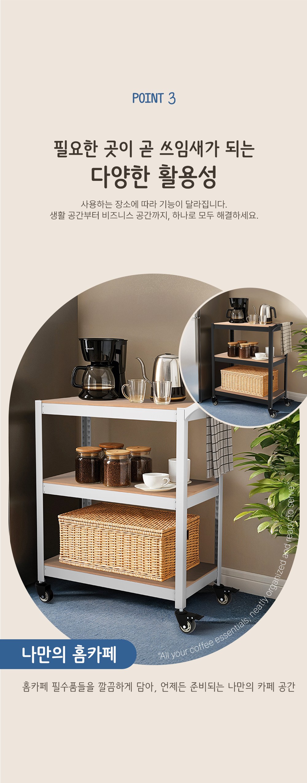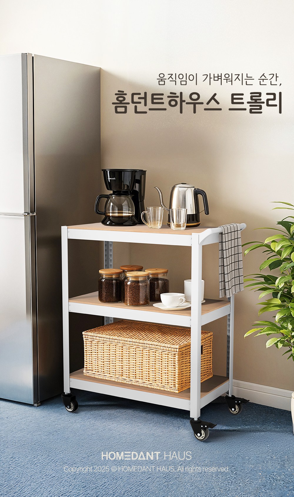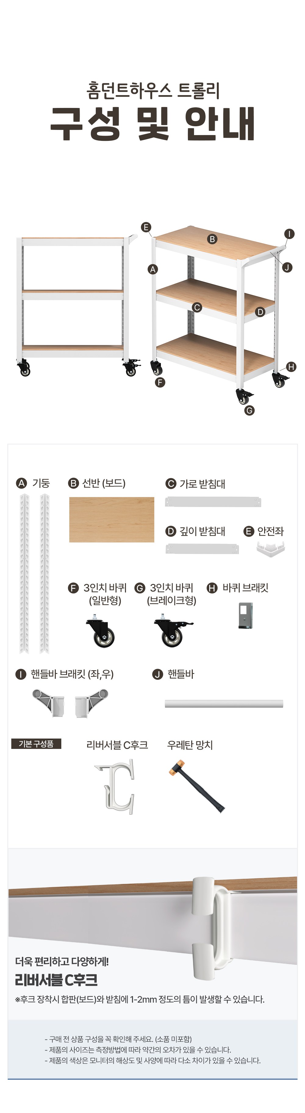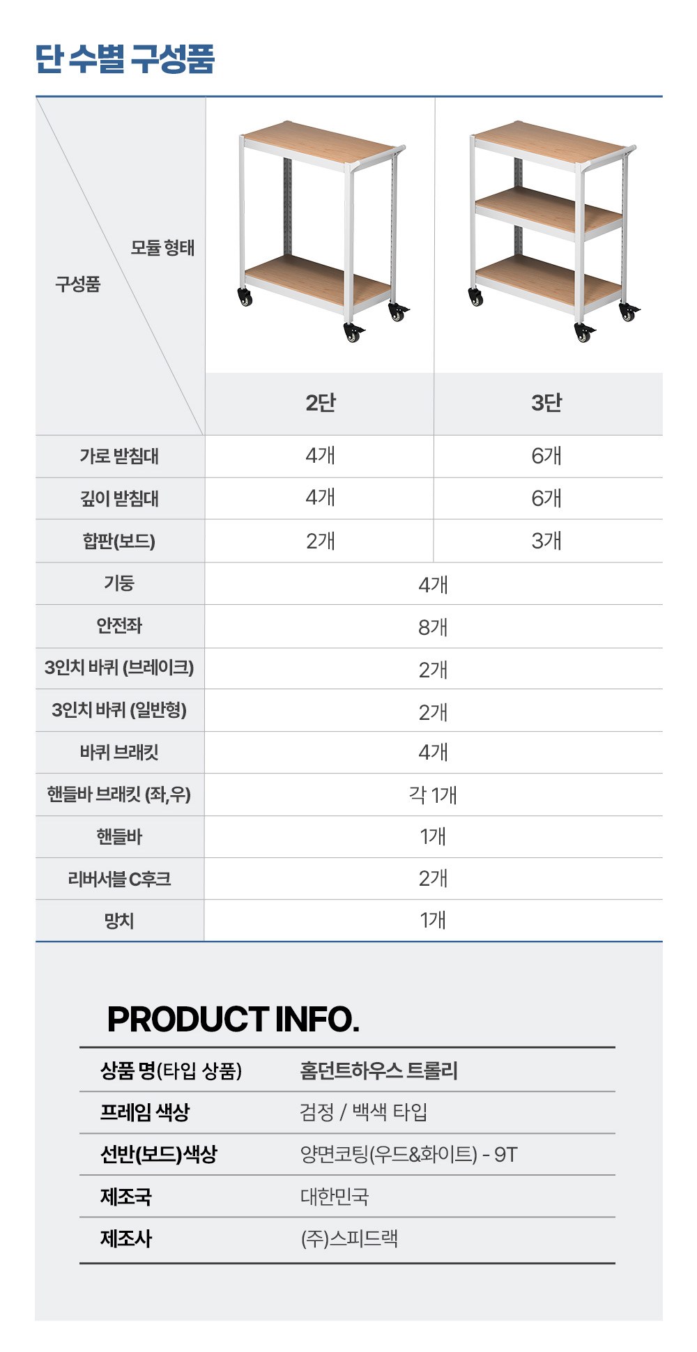 | 품명 | 스피드랙 홈던트하우스 철제 트롤리 3단 이동식 수납 선반 카트 600*400*880mm, 화이트 | KC 인증정보 | 해당없음 |