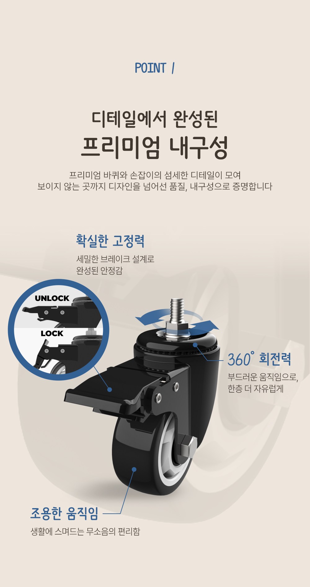 - 바퀴 고정 가능 여부: 바퀴고정가능