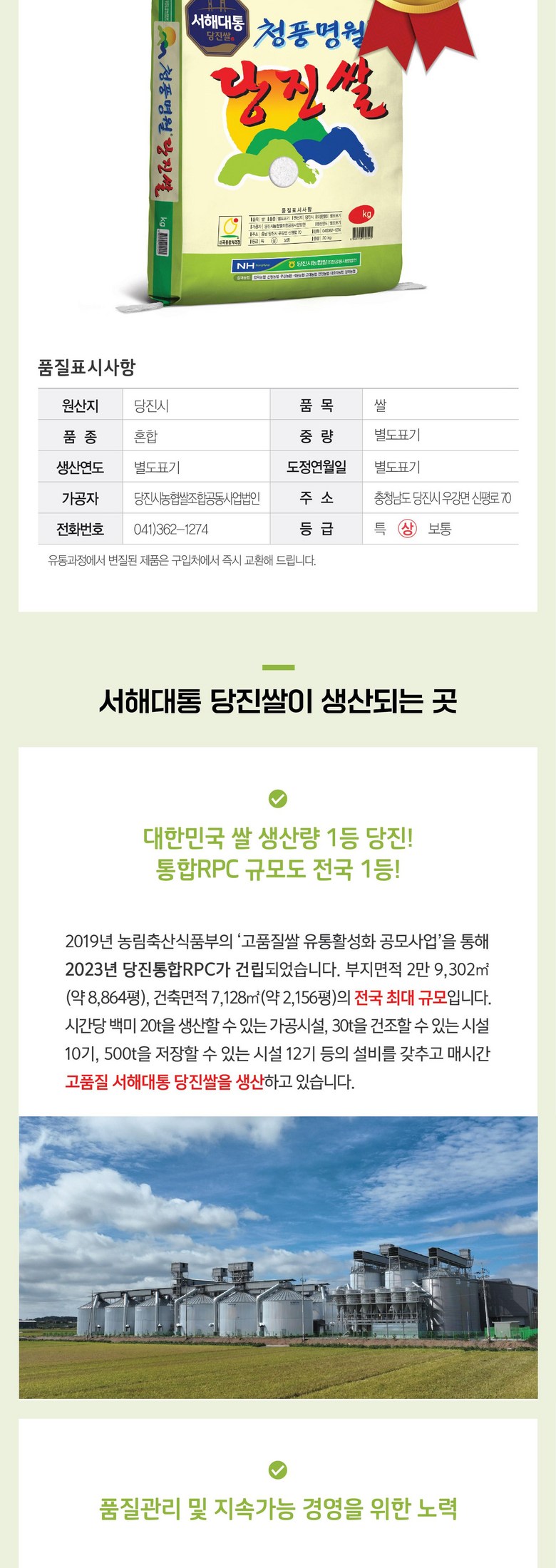 | 생산자(수입자) | 당진시농협쌀조합공동사업법인 | 원산지 | 충남 당진시 |