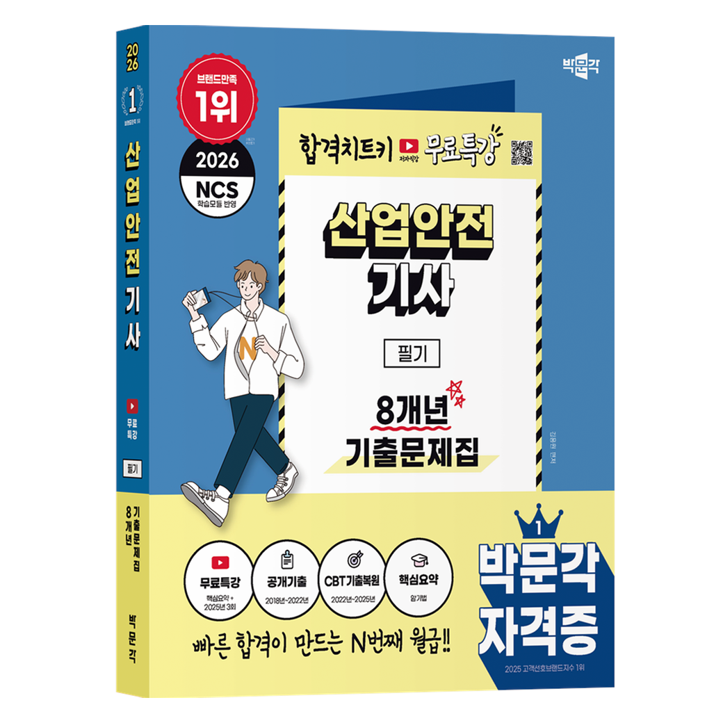 | 도서명 | 2026 박문각 산업안전기사 필기 8개년 기출문제집+무료특강 | 저자, 출판사 | 김용원, 박문각 |