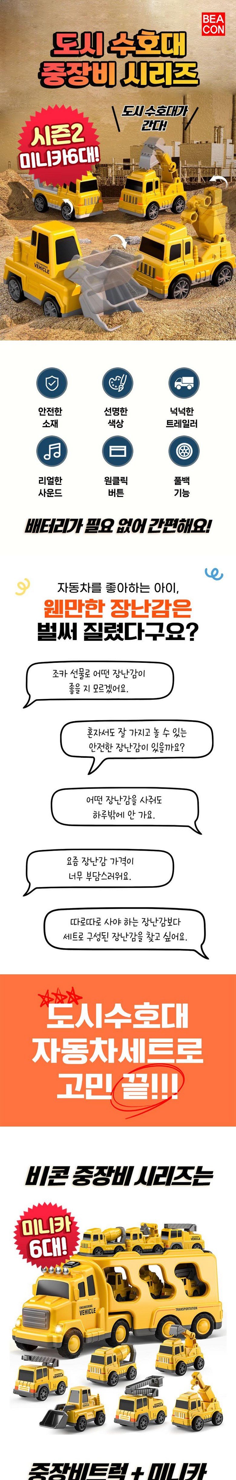BEACON 경찰차 소방차 장난감 7종 세트 도시수호대 중장비 자동차 완구 어린이 선물, 중장비 수호대, 1개