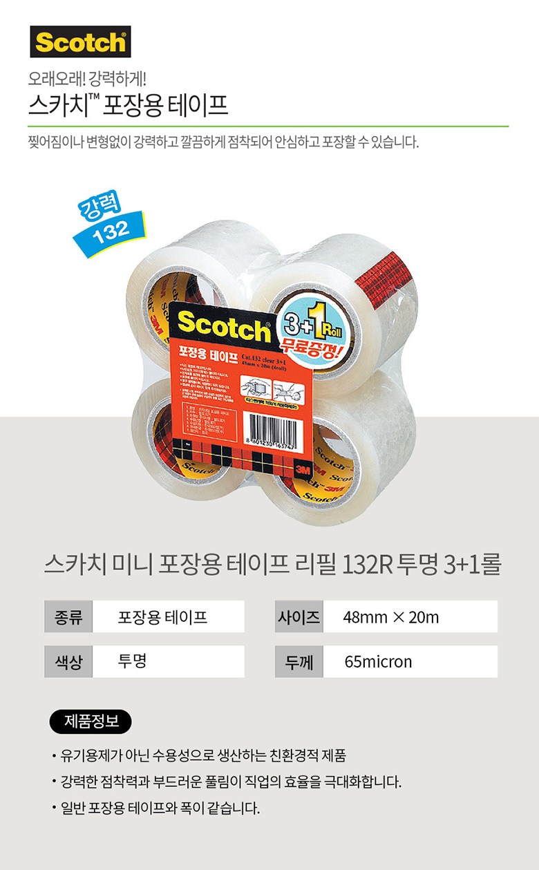 | 품명 및 모델명 | 미니 포장용 테이프 리필 132R (투명) | 인증/허가 사항 | 해당없음 |