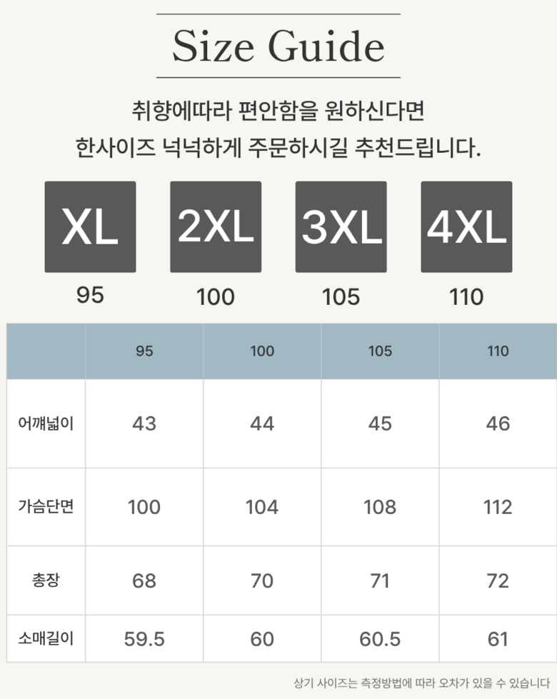 - 사용계절: 봄/가을용