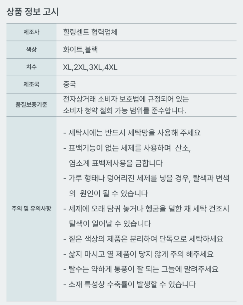 - ㆍ교환/반품에 관한 일반적인 사항은 판매자가 제시사항보다 관계법령이 우선합니다.