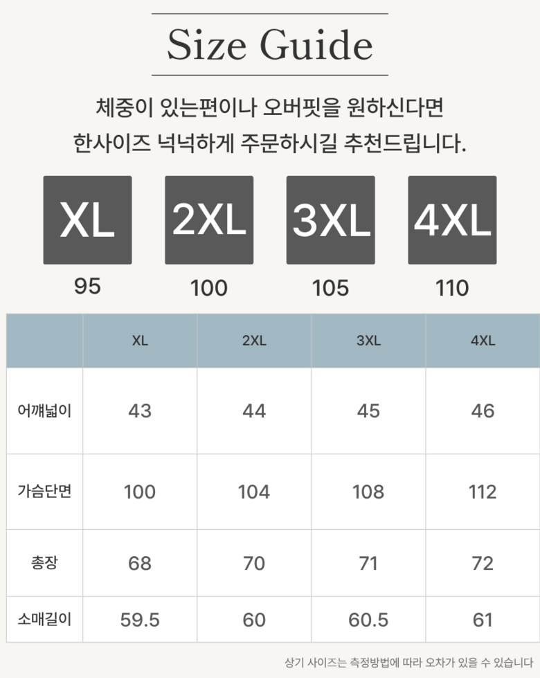 - 의류 핏: 기본