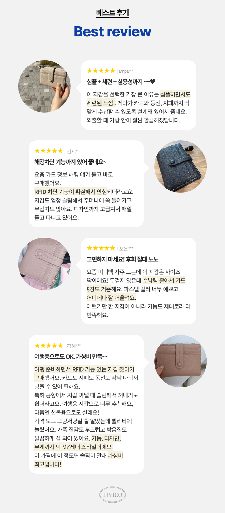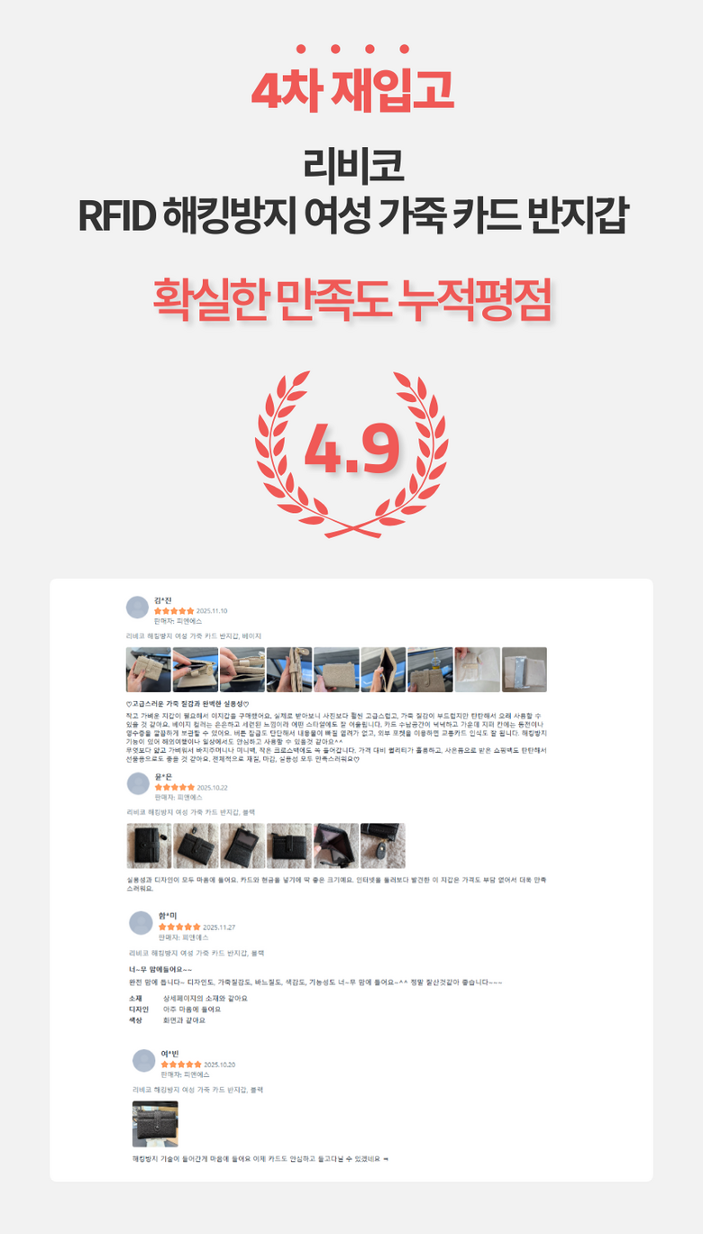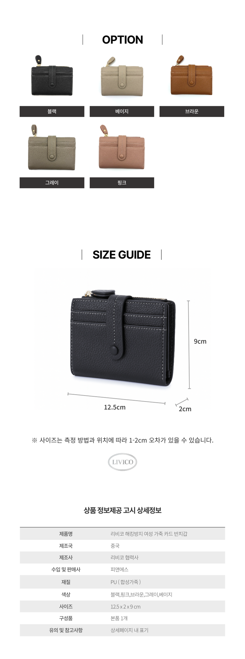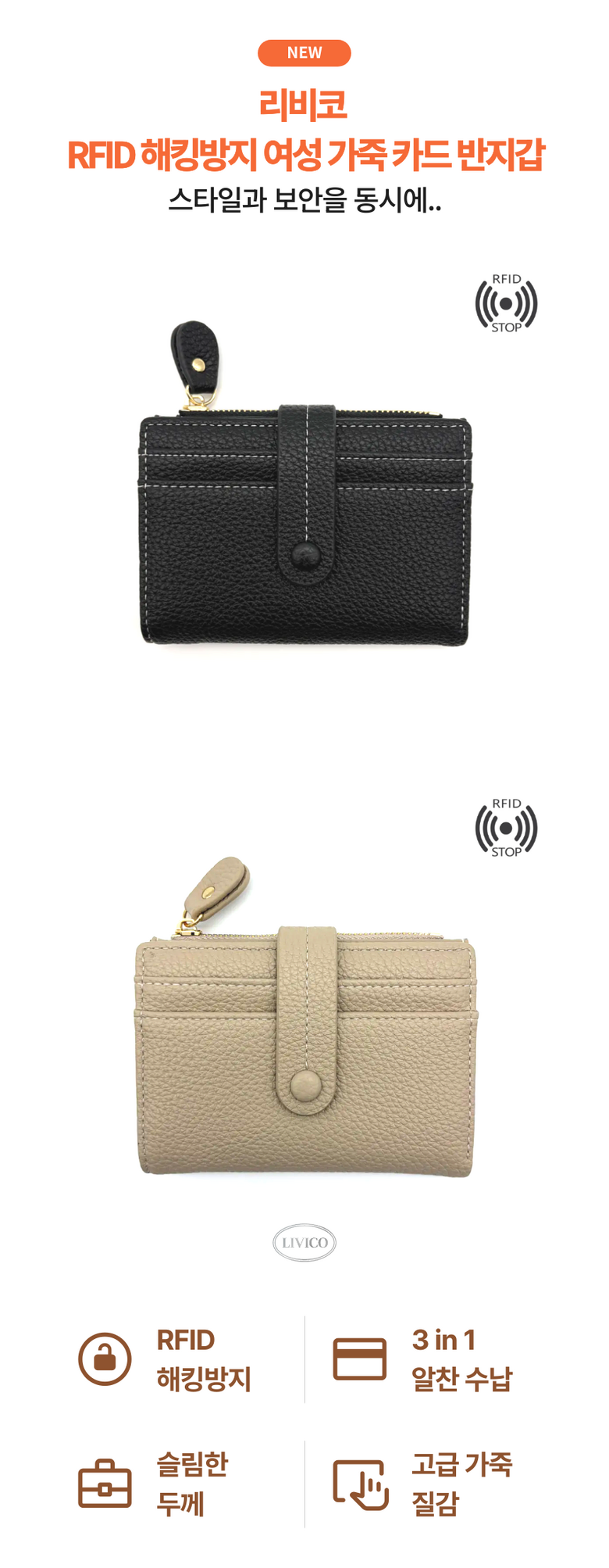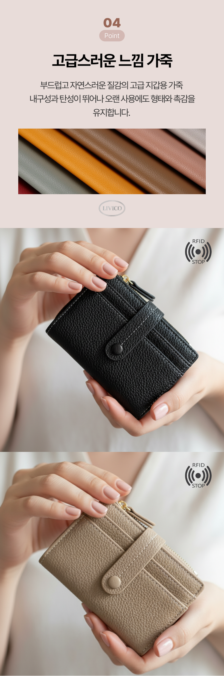 | 종류 | 리비코 해킹방지 여성 가죽 카드 반지갑 | 소재 | PU (합성가죽) |