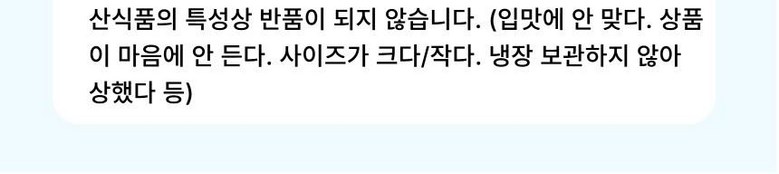 | 계절상품/식품/화장품 | ㆍ신선/냉장/냉동 상품의 단순변심의 경우 ㆍ뷰티 상품 이용 시 트러블(알러지, 붉은 반점, 가려움, 따가움)이 발생하는 경우, |