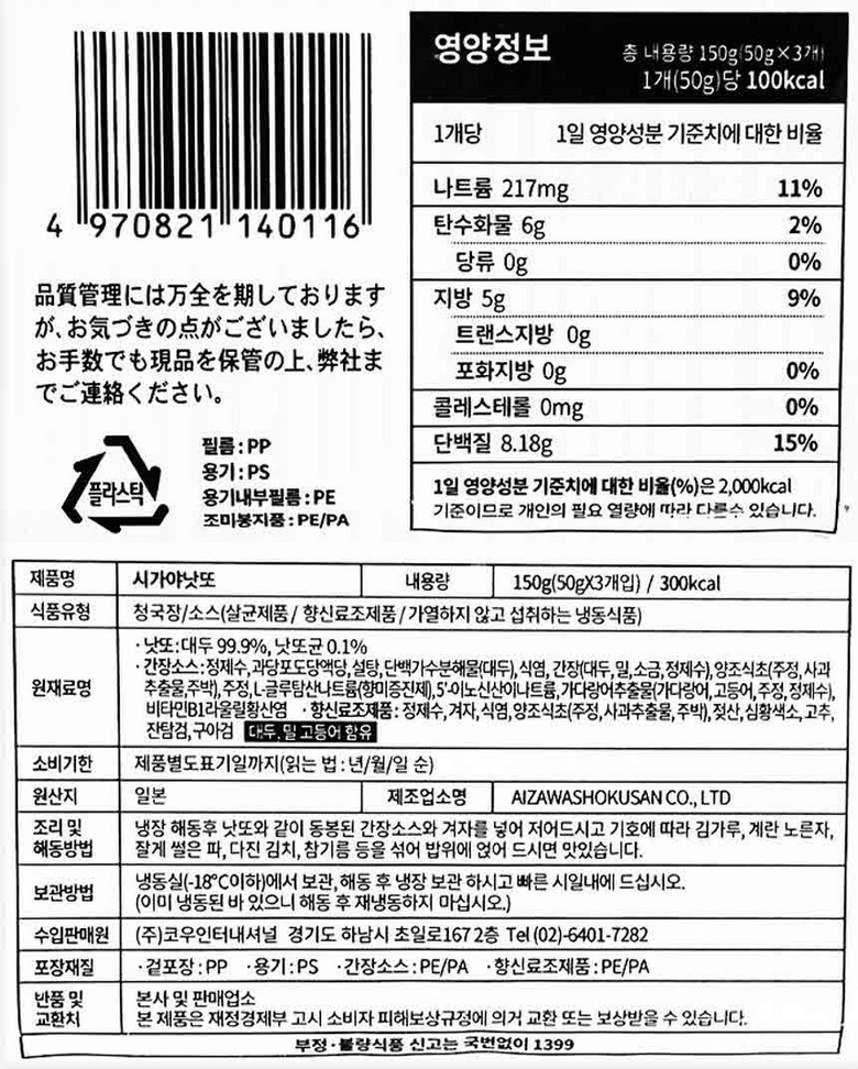 | 제품명 | 시가야 낫또 | 식품의 유형 | 청국장 |