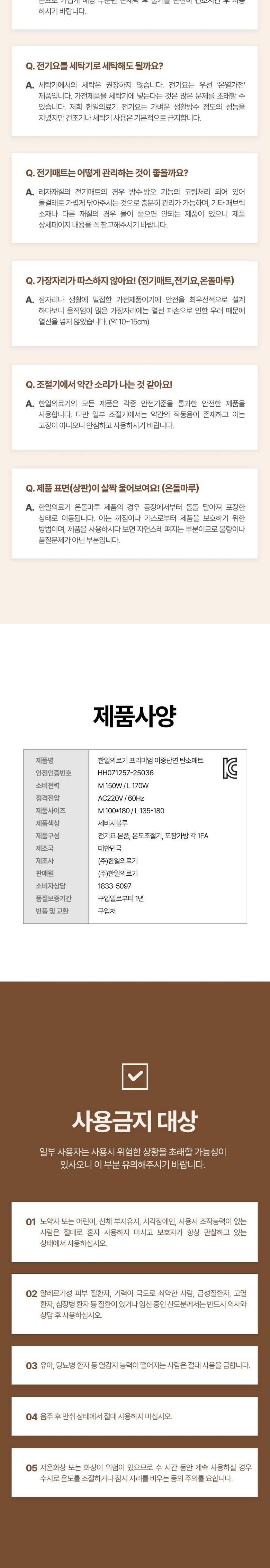 | 품명 및 모델명 | 한일의료기 프리미엄 이중난연 탄소매트 | KC 인증정보 | HH071257-25036 R-R-46A-HL-D205_25 |