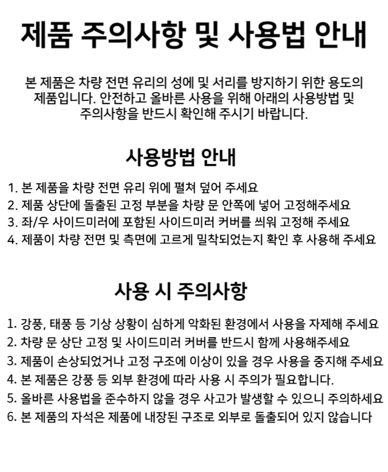 | 품명 및 모델명 | 비바띵즈 자동차 성에방지커버 차량 앞유리 눈 덮개 | 인증/허가 사항 | 없음 |