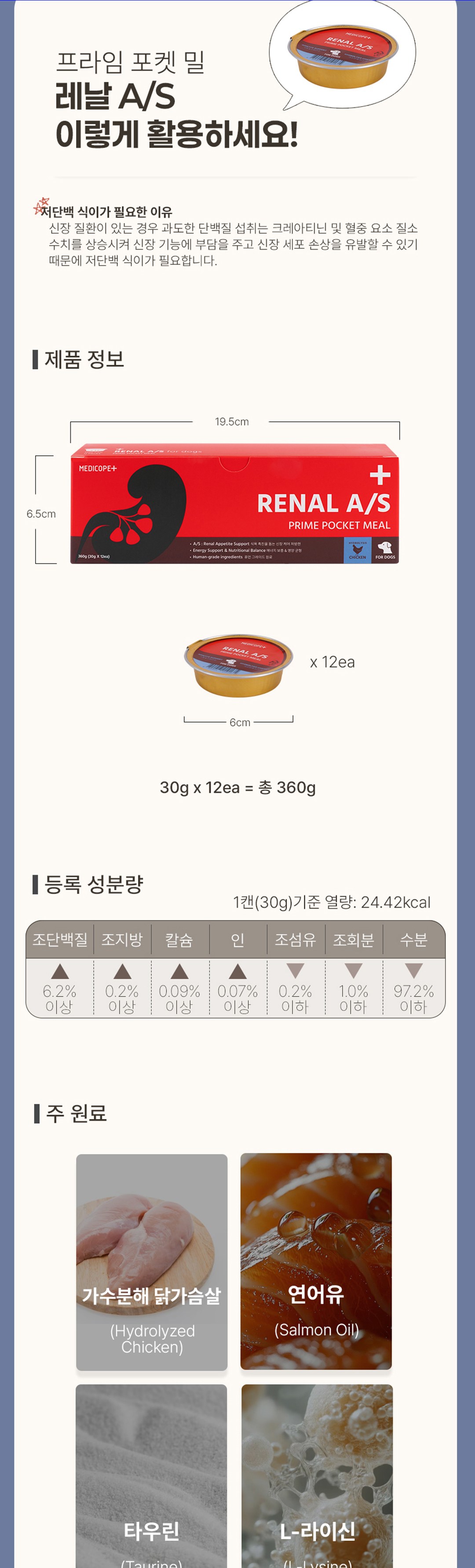 | 품명 및 모델명 | 프라임 포켓 밀 레날 A/S 포독 | 인증/허가 사항 | 사료관리법에 따른 성분등록번호 : 컨텐츠 참조 |