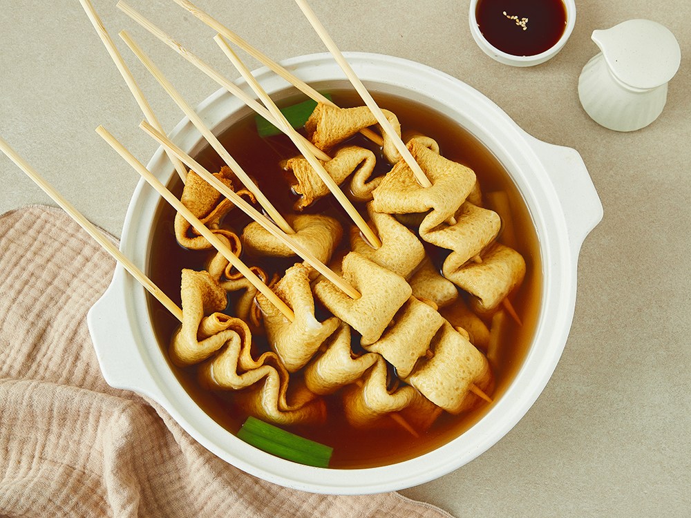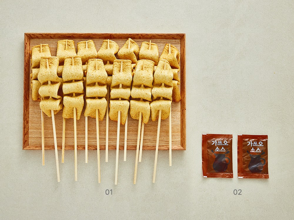 꼬치를 잡고 쏙쏙 빼먹는 재미가 쏠쏠한 꼬치어묵탕이에요. 동봉된 가쓰오 소스를 넣고 팔팔 끓이면 짭조름한 육수가 완성되죠. 그 국물을 흠뻑 머금은 어묵을 한입 먹으면 쫄깃한 식감으로 입에 착 달라붙는답니다. 냄비에 끓이기만 하면 완성되니, 간편하게 식탁을 채워보세요.