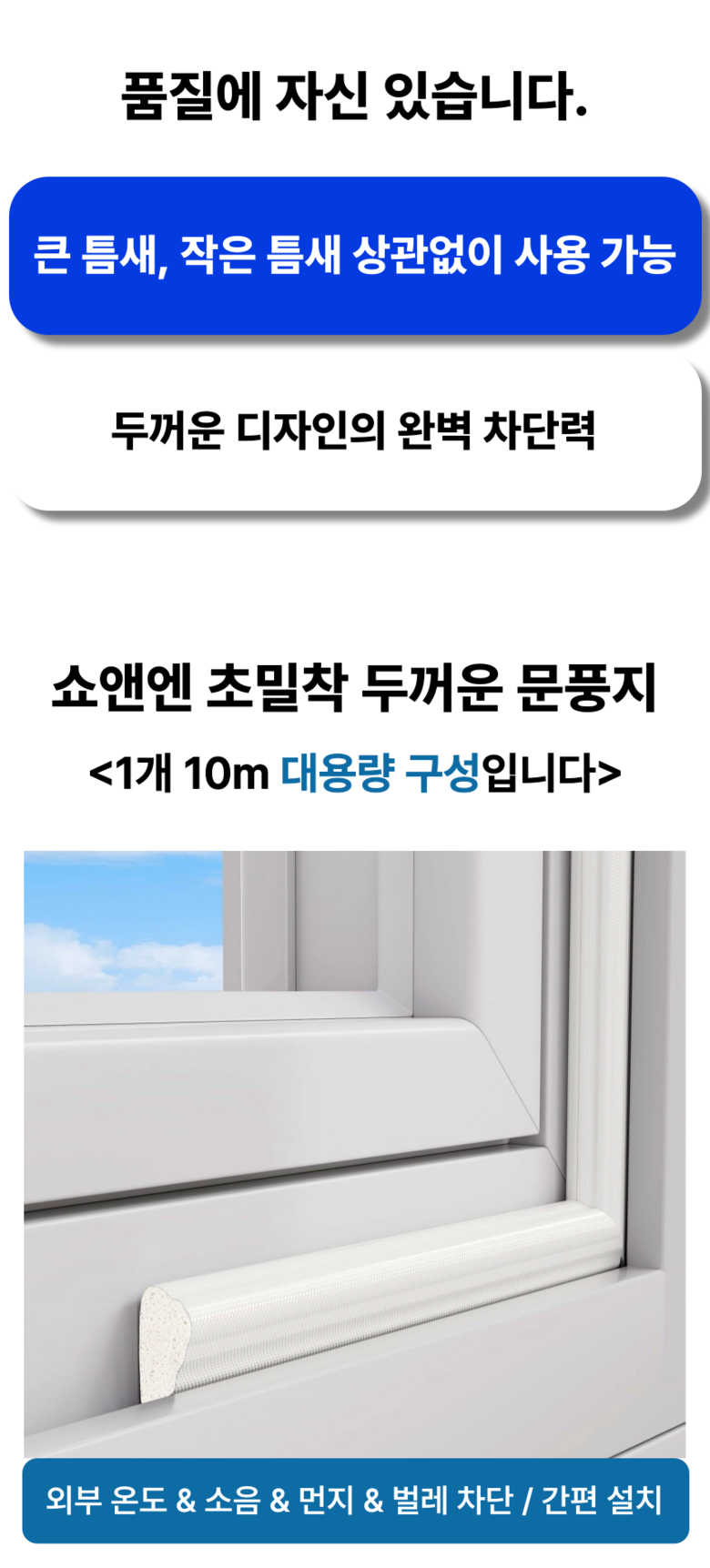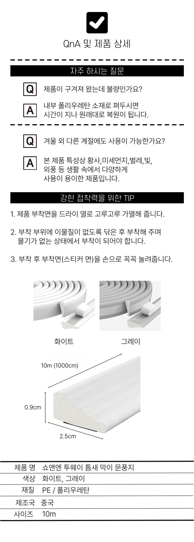 쇼앤엔 창문 창틀 틈새 막이 문풍지 10m, 그레이, 2개