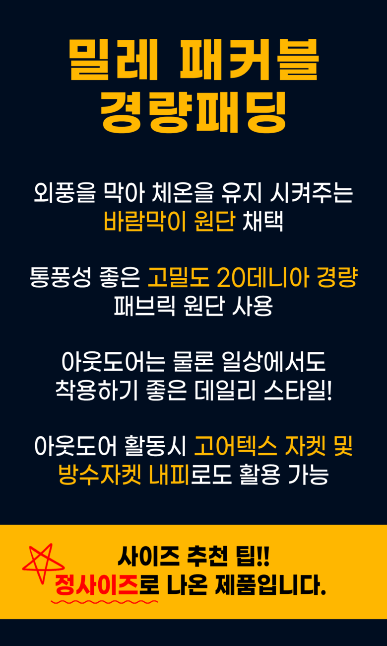 | 치수 | 95,100,105,110,115 | 제조자(수입자) | (주) 밀레 |