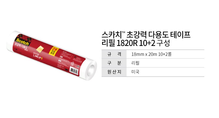 | 품명 및 모델명 | 스카치 다용도 매직 테이프 리필 | 인증/허가 사항 | 해당없음(14세이상) |