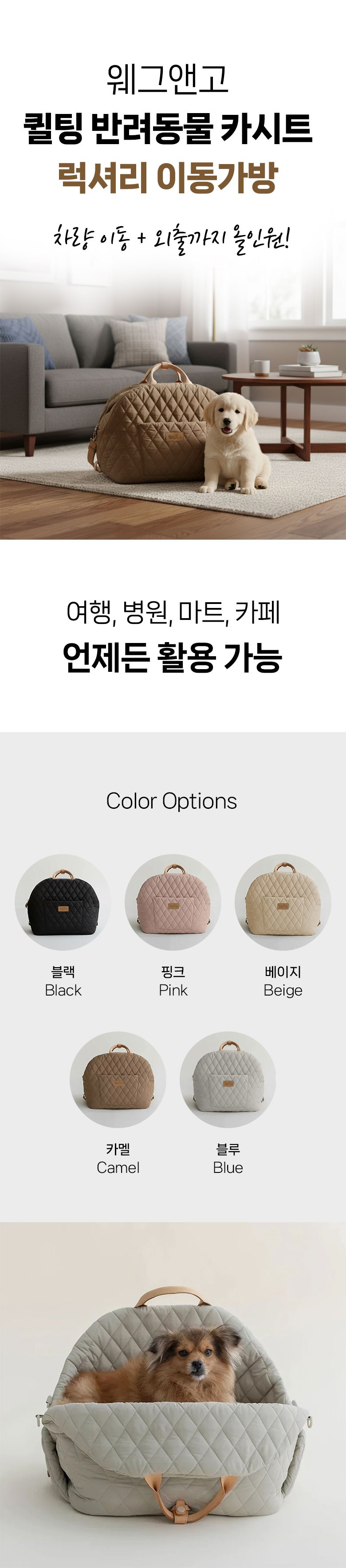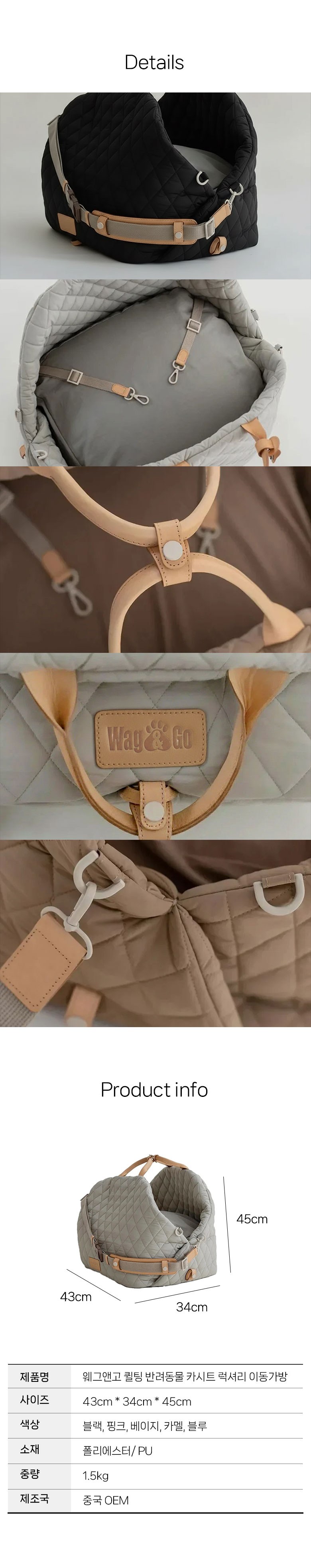 웨그앤고 퀼팅 반려동물 카시트 럭셔리 이동가방