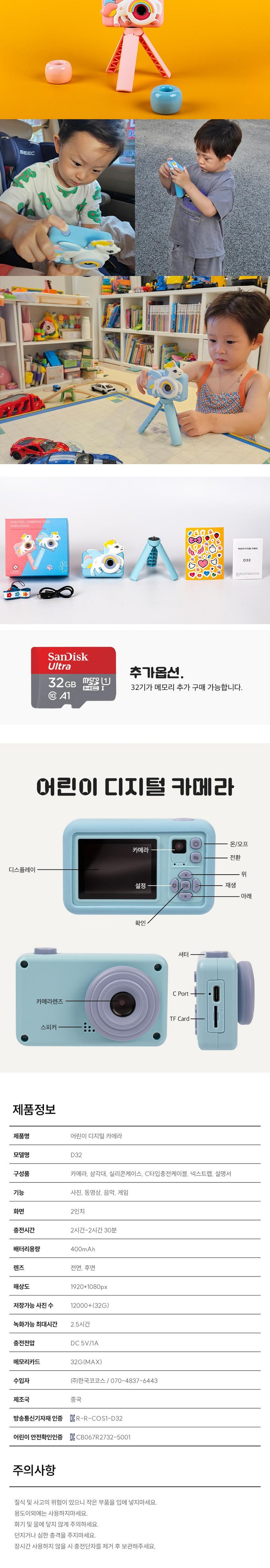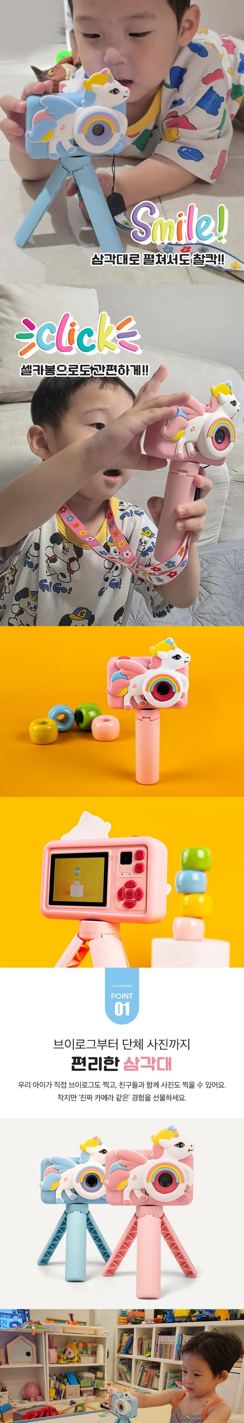 [한국코코스]키즈카메라 어린이용 디지털 카메라 휴대용 카메라 셀카 가능 삼각대포함 (SD메모리카드 32G포함)