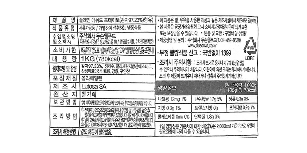 감자를 곱게 으깨 뭉쳤어요. 감자의 껍질을 벗기고, 손질하는 과정이 없어 간편하게 활용할 수 있답니다. 따로 준비한 우유, 버터와 함께 넣고 끓이기만 하면 근사한 매쉬드 포테이토가 완성되죠. 한 입 드시면, 고소하고 부드러운 풍미가 입안 가득 느껴질 거예요.