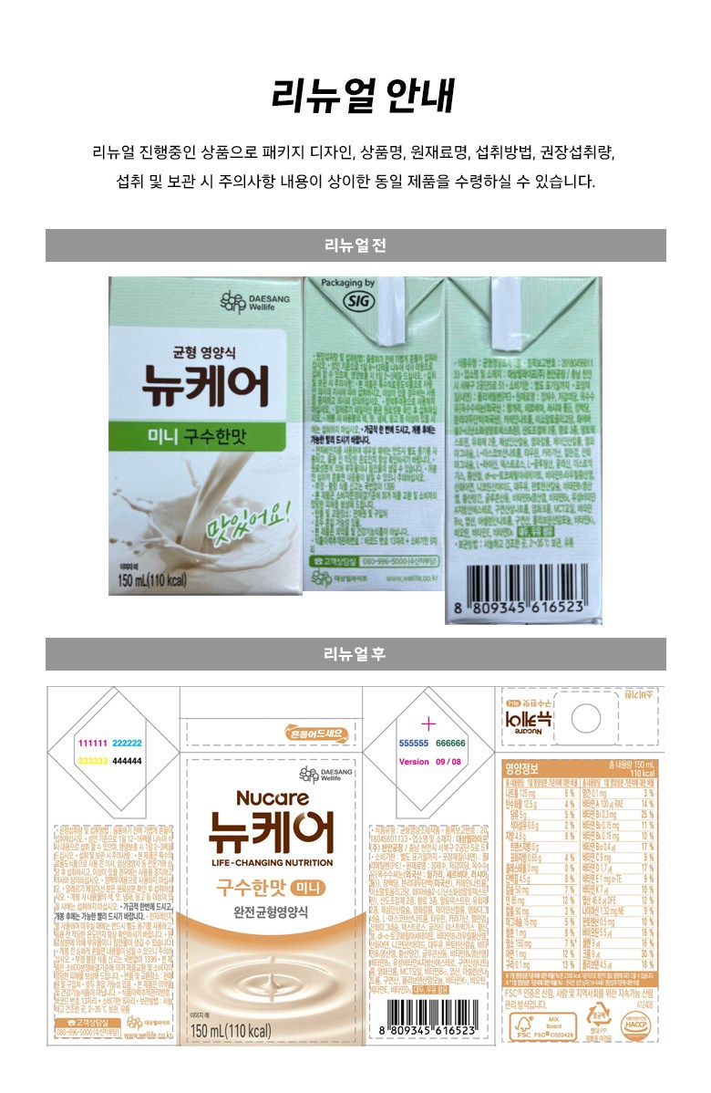 | 제품명 | 뉴케어 구수한맛 미니 완전균형영양식 | 식품의 유형 | 컨텐츠 참조 |
