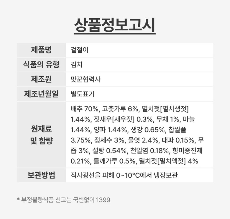 | 제품명 | 상품 상세페이지 참조 | 식품의 유형 | 상품 상세페이지 참조 |
