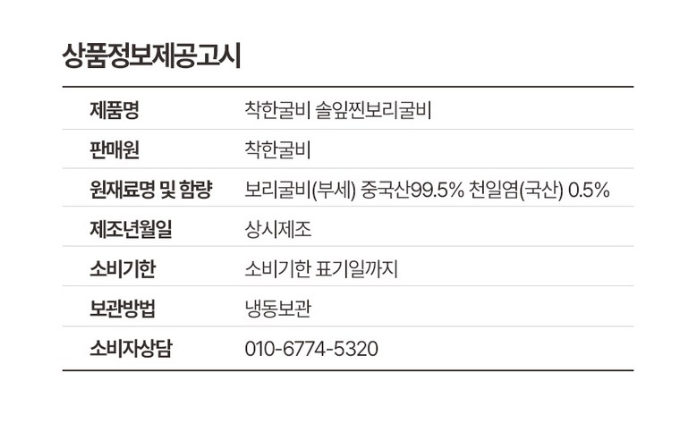 | 제조연월일, 소비기한 또는 품질유지기한 | 상품 상세페이지 참조 | 세부 품목군별 표시사항 | 상품 상세페이지 참조 |