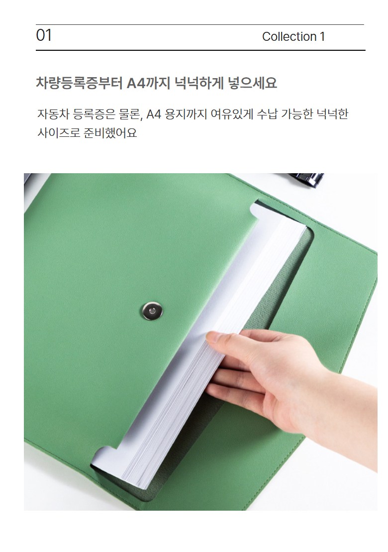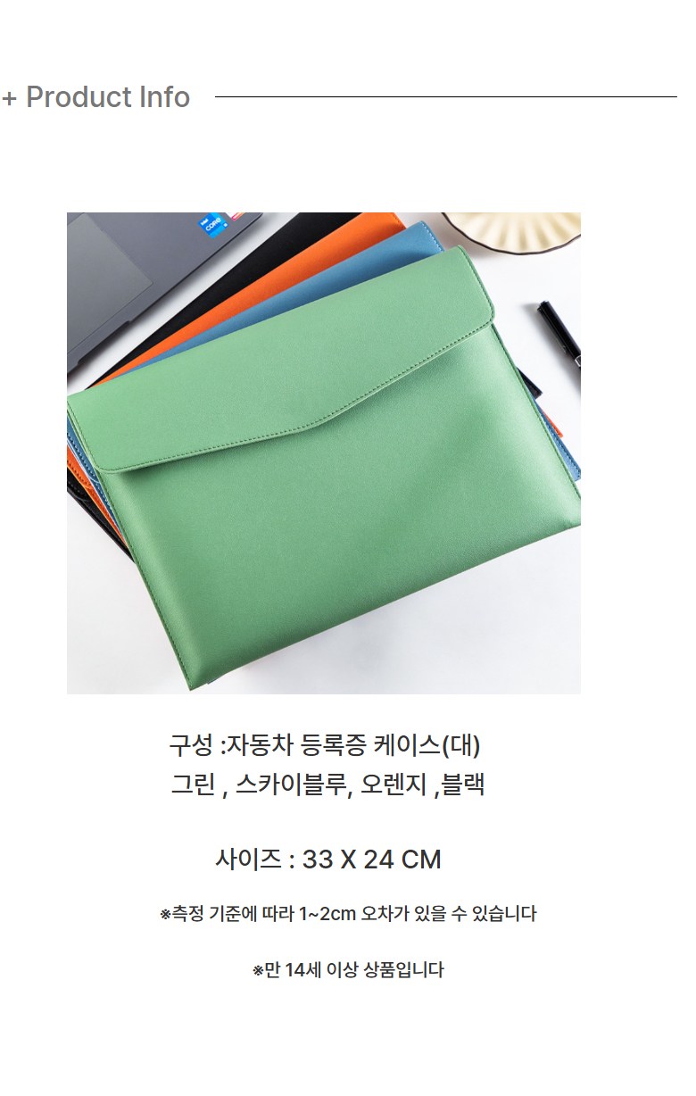 사이즈 L 차량 등록증 케이스로 차량 등록증 뿐만 아니라 넉넉하게 다른 자동차 서류들도 보관 가능합니다!