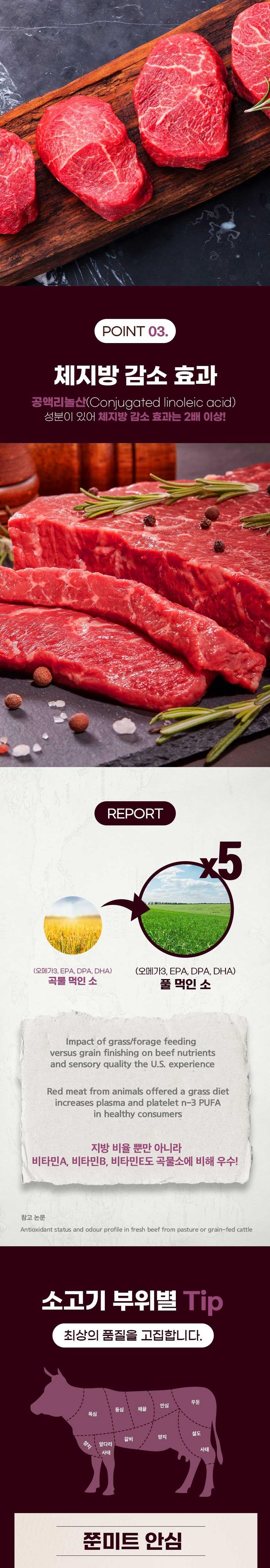 본래 100% 풀을먹고자란소는 질깁니다 더욱 부드럽고 풍미가 좋게하게 하기위해