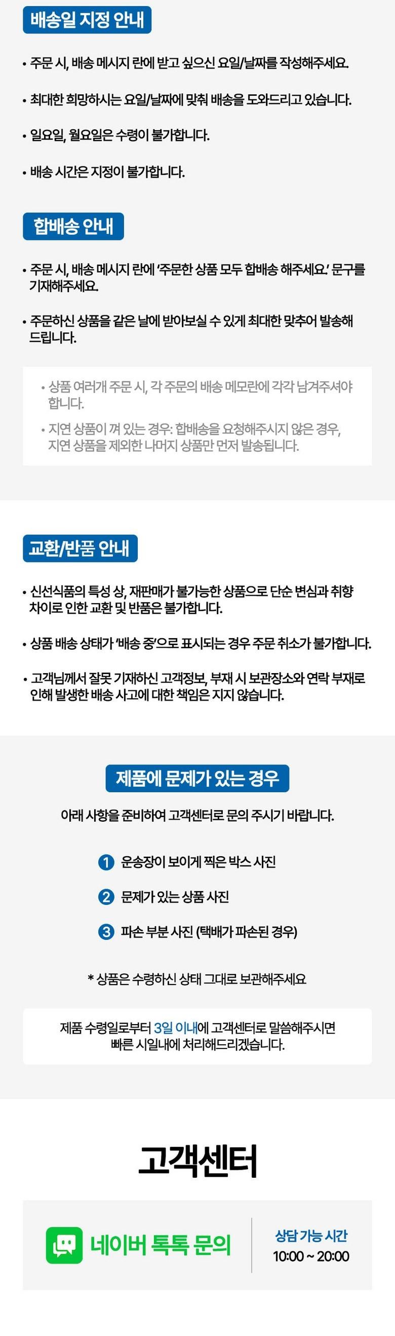 | 배송방법 | 순차배송 | 배송비 | 무료배송 - 도서산간 지역 배송불가 |