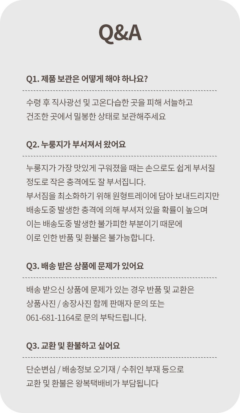 - 상품문의 및 후기게시판을 통해 취소나 환불, 반품 등은 처리되지 않습니다.