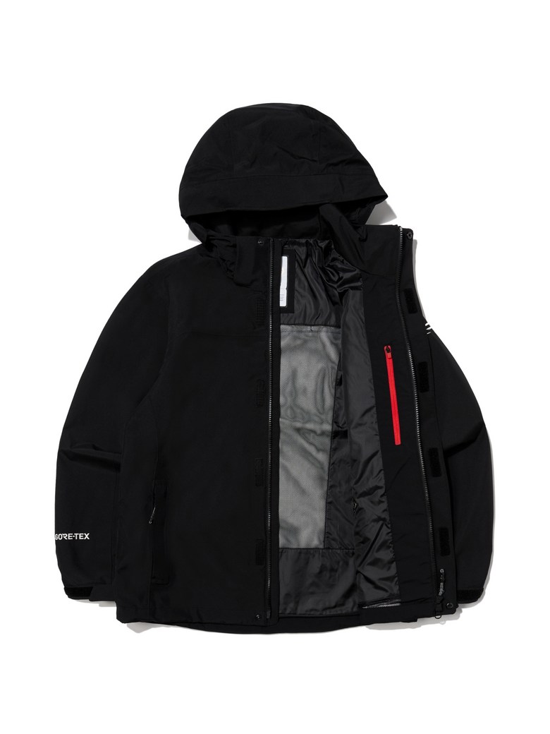 - GORE-TEX 2레이어 원단과 방수 심 작업을 적용해 완벽한 방수를 구현하는 방수 자켓 입니다.