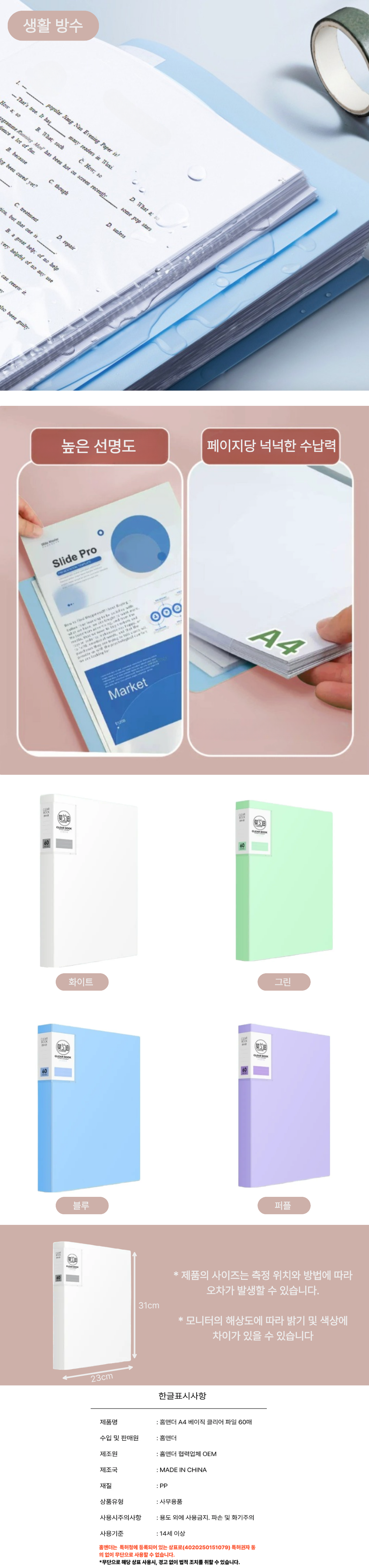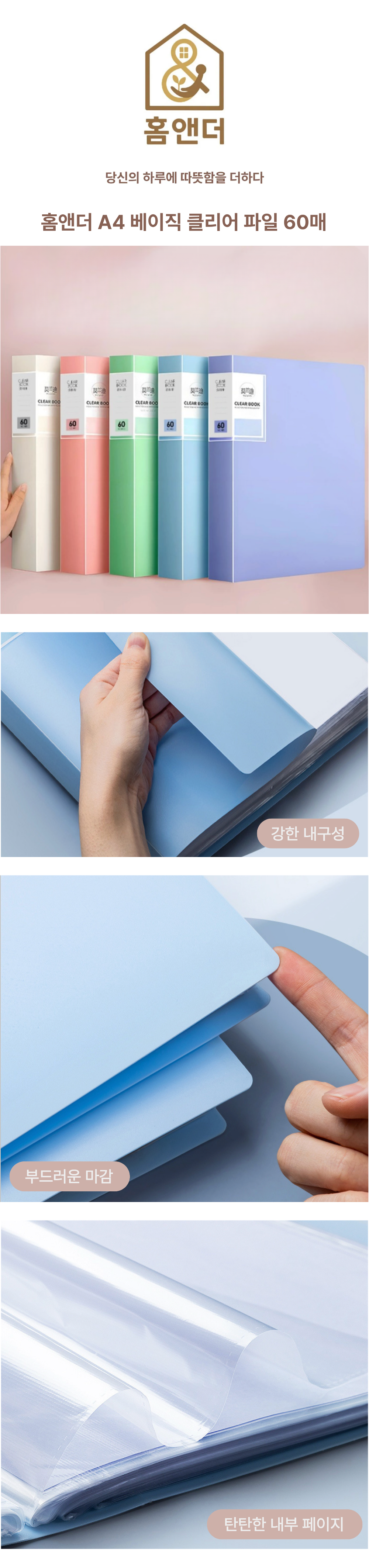 | 품명 및 모델명 | 홈앤더 A4 베이직 클리어 파일 60매 | 인증/허가 사항 | 해당없음(14세이상) |