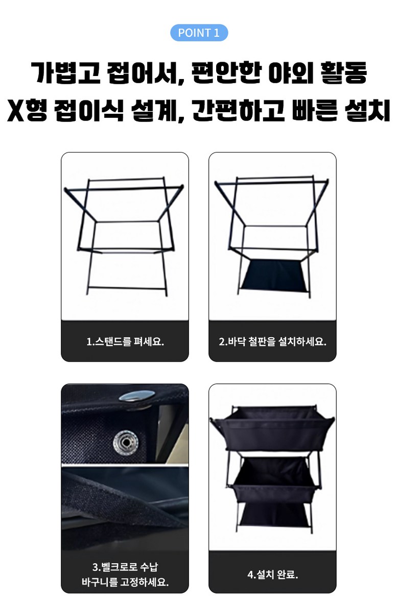 | 품명 및 모델명 | 캠핑 접이식 선반 | 인증/허가 사항 | 상품 상세페이지 참조 |