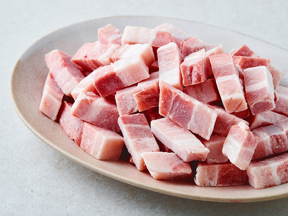 먹기 좋은 큐브 형태로 손질해, 해동만 한 후 바로 활용하기 좋은 삼겹살이에요. 요리에 넣으면 고소한 풍미를 한껏 더해주죠. 살코기와 지방이 적절한 비율로 섞여있어, 야들야들하면서 쫄깃한 식감이 일품이랍니다. 그대로 구워 촉촉한 육즙을 온전히 즐겨도 좋고, 볶음밥, 찌개에 넣어 드셔도 좋아요.