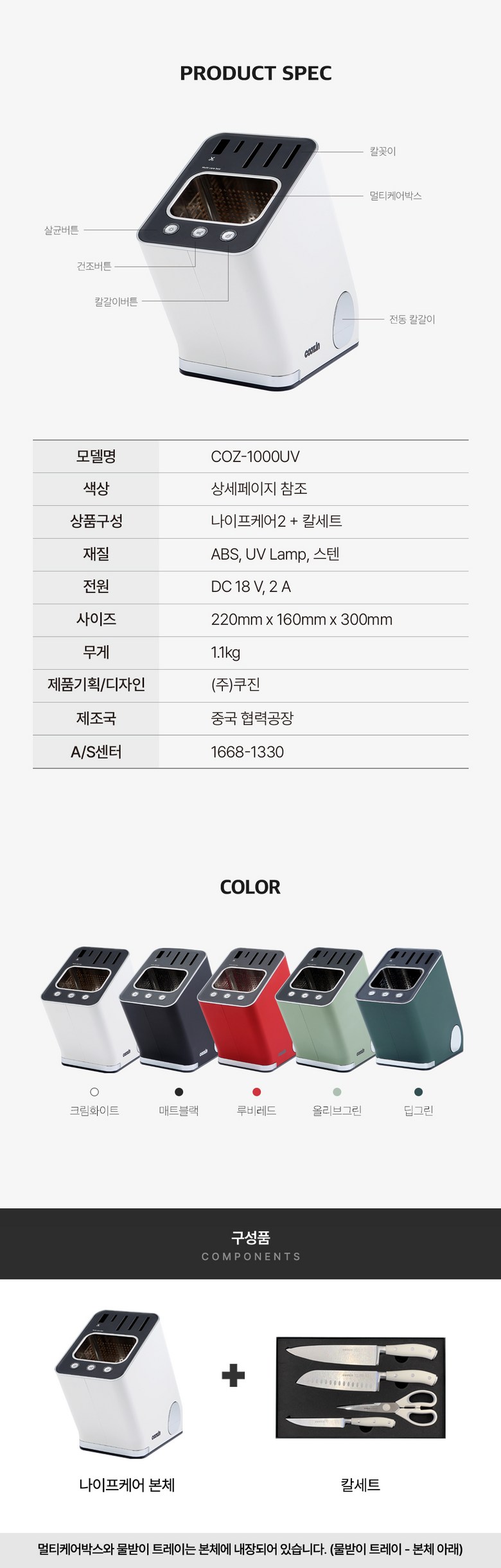 쿠진 나이프케어 시즌2 살균건조기 칼갈이 + 칼세트