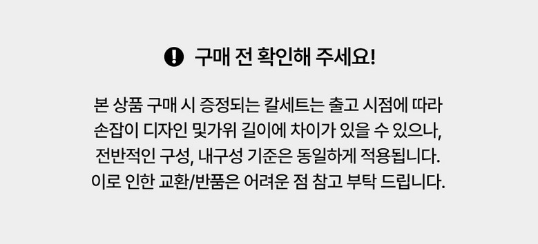 - ㆍ모니터 해상도의 차이로 인해 색상이나 이미지가 실제와 달라, 고객이 단순 변심으로 교환/반품을 무료로 요청하는 경우