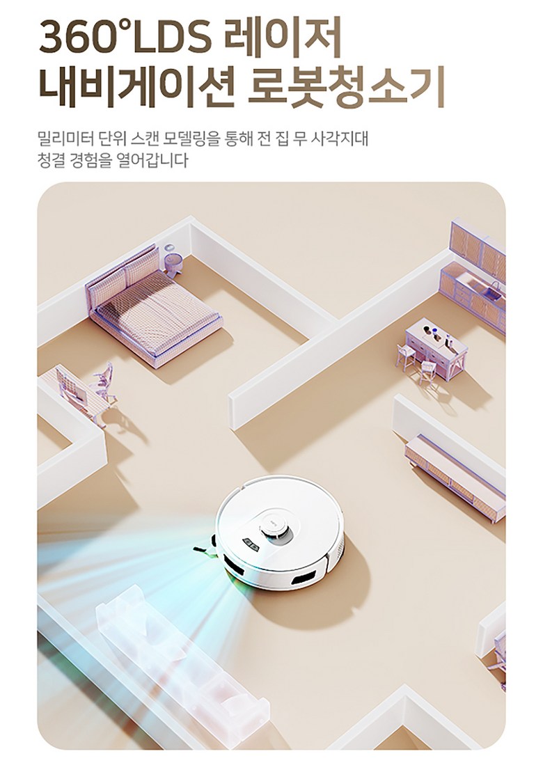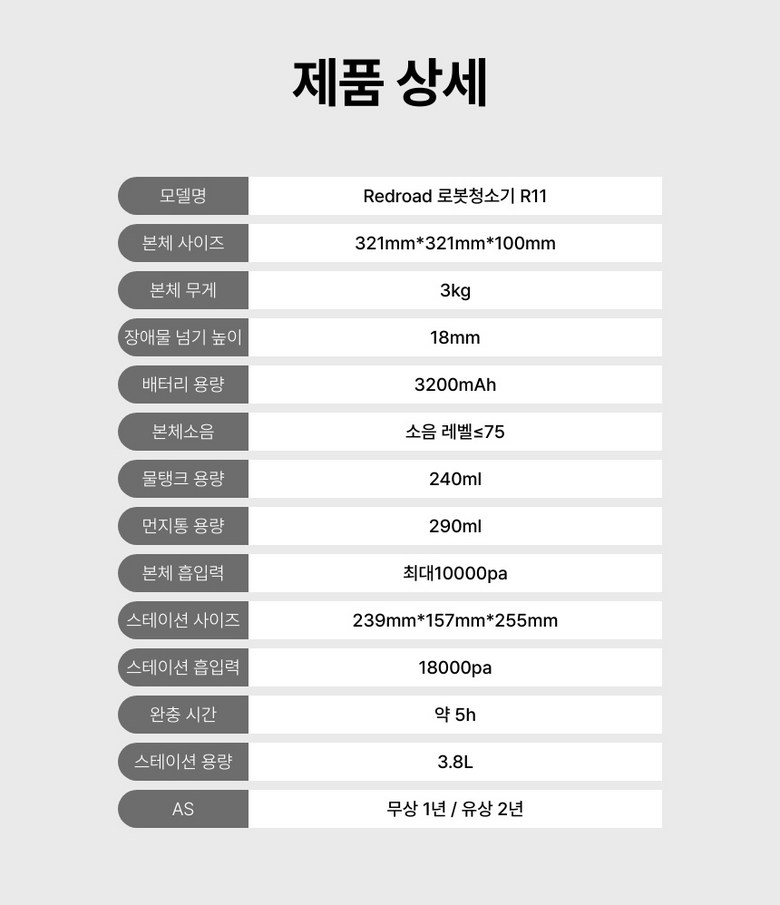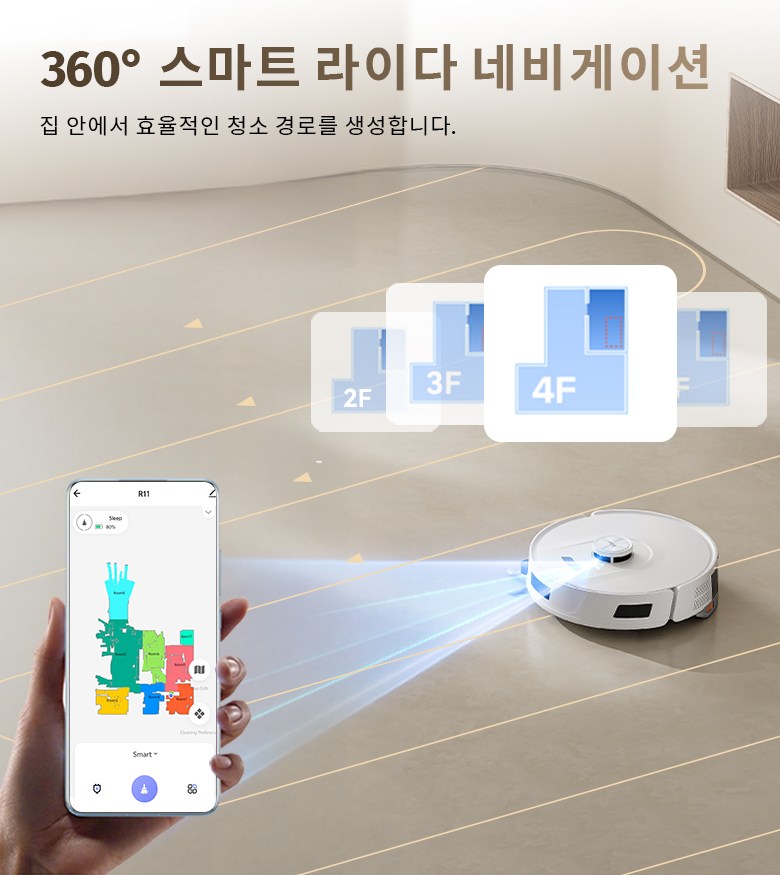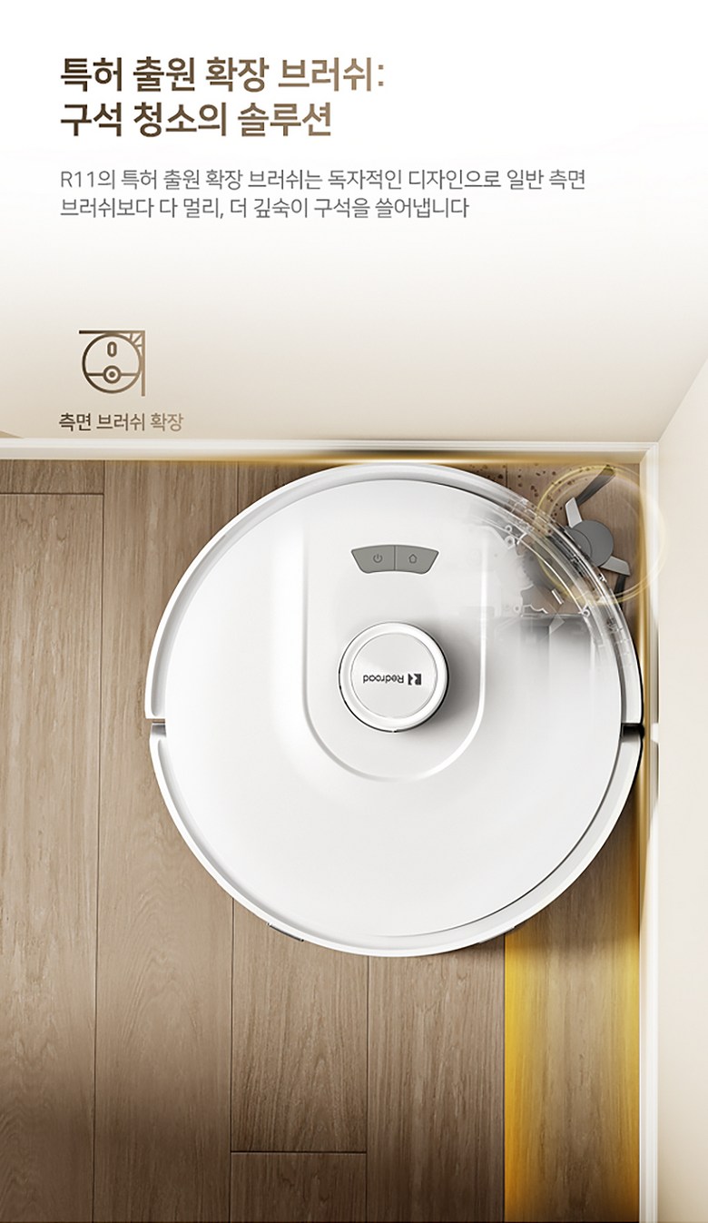 Redroad R11 LDS센서 2in1 물걸레 로봇청소기 강력한 10000Pa 흡입력 사이드 브러쉬 확장 특허 기술 먼지비움 어플연동